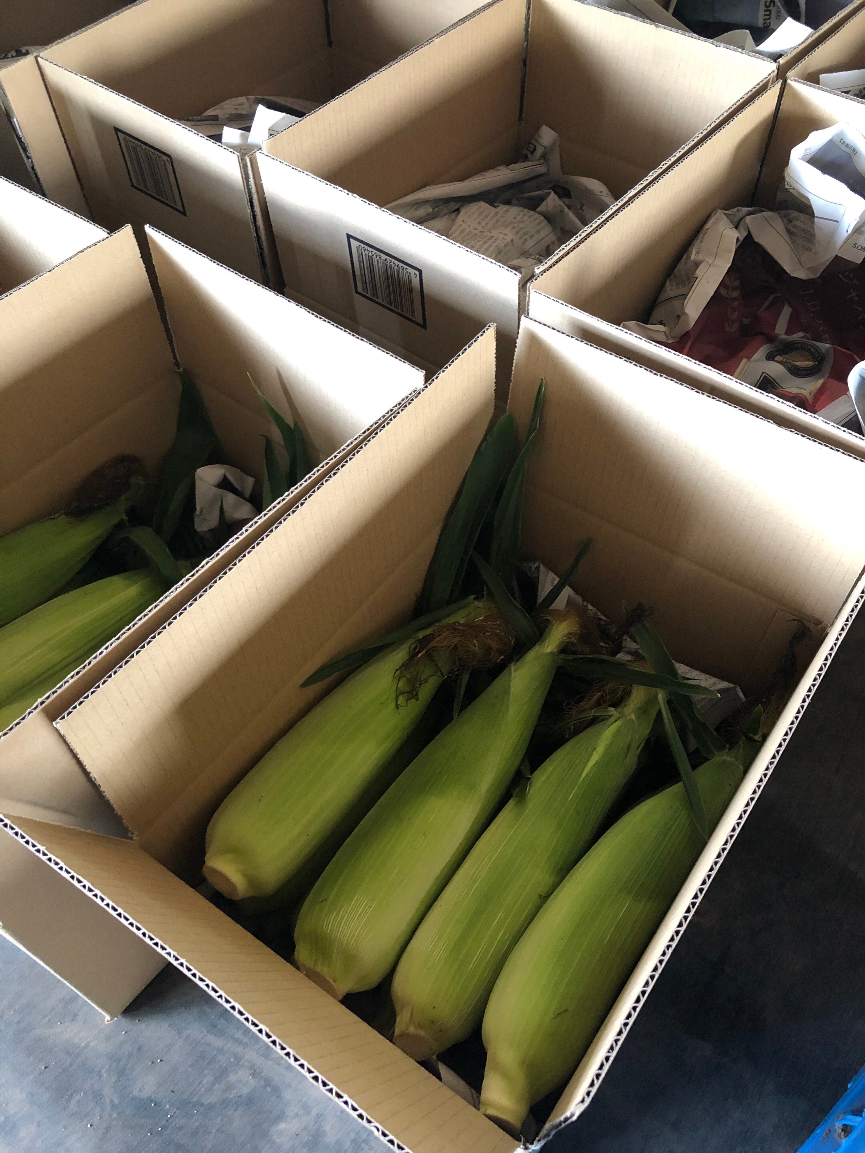 ◎予冷の重要性:収穫直後のトウモロコシは熱をもっており、甘みがどんどん失われていきます。一晩しっかりと予冷することで、お客様のお手元に到着後までしっかりとした甘みを維持することができます。